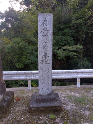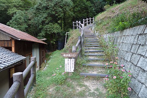お堂向かって左にある民家の庭先に作州の道しるべが立っている