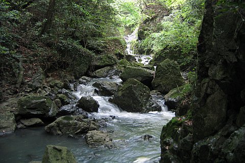 向かって左の道へ進むと道祖渓に至る