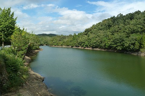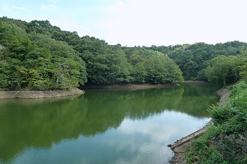 車の場合は県道を南へ280m進み、丁字路を右折して加戸池の土手下の道を西へ45m進む