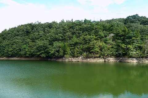 徒歩・自転車の場合は池の西岸の道を南へ300m進む