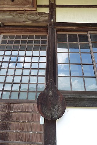 山口県山口市にある瑠璃光寺(曹洞宗)の本堂前にも大杓子と大擂木がある。