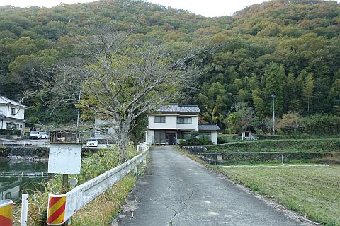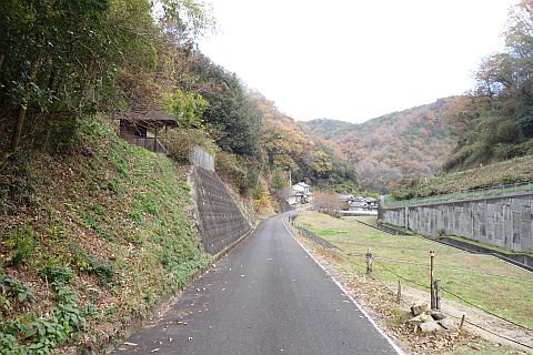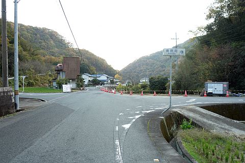 五叉路を右折して広域農道を東へ405m下る