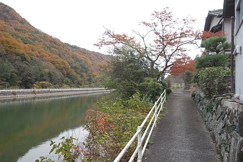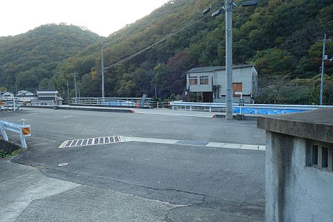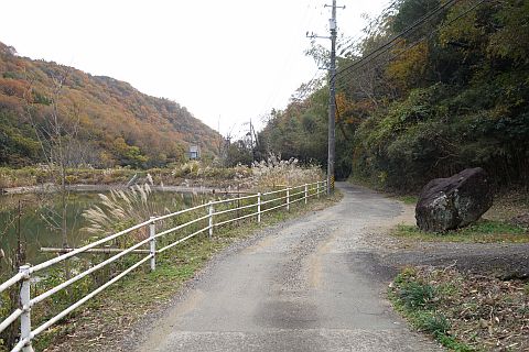 加戸池の北端にある丁字路を右折
