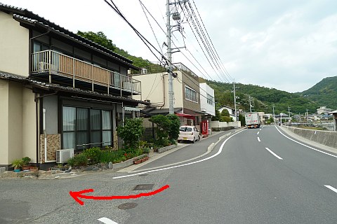 大工ノ浜の県道47号線に出たら右折し、西北西へ106m進んで右折