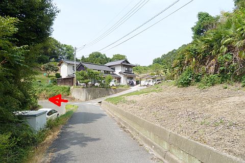 松尾大空地区ゴミ置き場の横のY字路を右折し、細道を西北西へ146m進む
