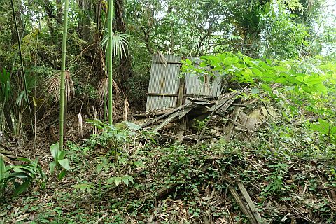 皿池の南端にある十字路を右折して東南へ280m進み、丁字路を左折して北へ100m上る