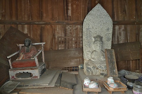 堂内に薬師如来坐像が2体、地蔵菩薩坐像の首が2個