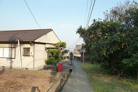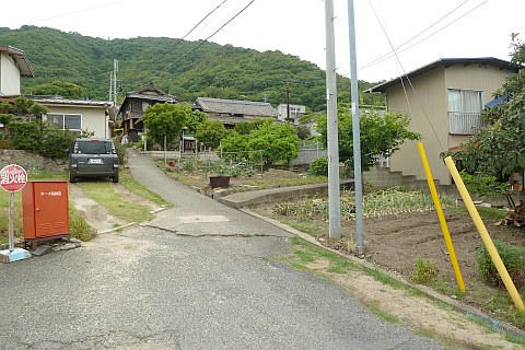 丁字路を右折し、細道(四軒屋集会所の筋)を南東へ50m下る