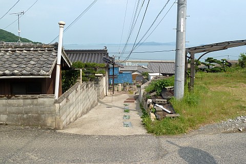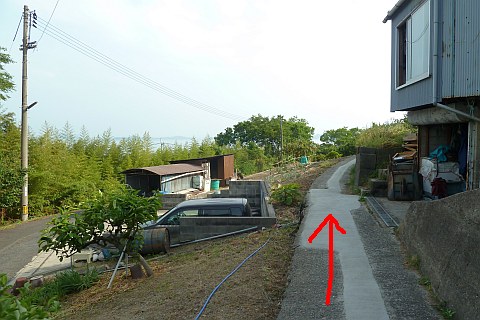 県道47号線沿いの海の家の横の丁字路を右折し、車道を北へ28m上る
