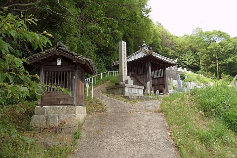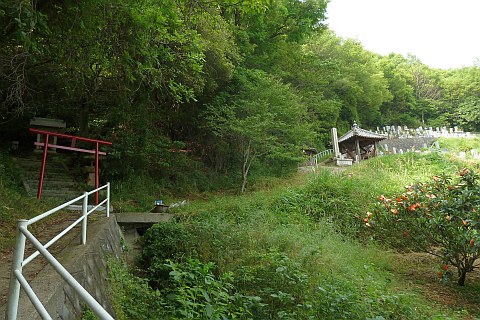 改修記念碑前の丁字路を右折して墓地への参道を北北西へ23m上る