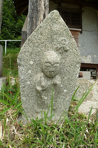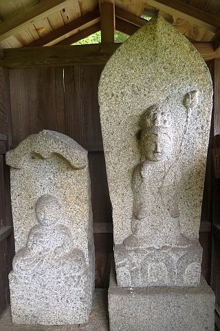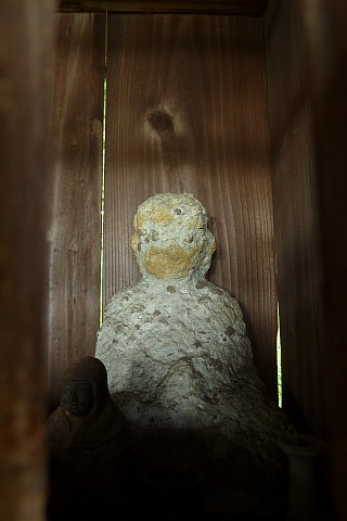 伝教大師坐像?と石造地蔵菩薩坐像?(堂内向かって右)