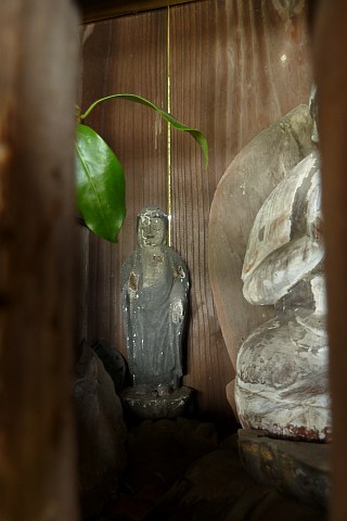 上半身が欠損した十一面観世音菩薩立像?と御宝号碑が祀られていた