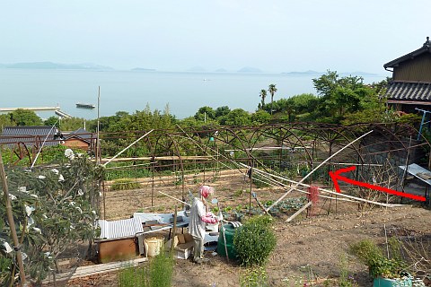 浅野家の墓地への参道を南南西へ57m進む