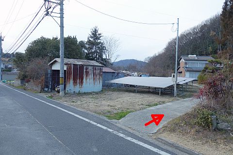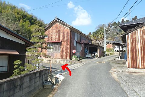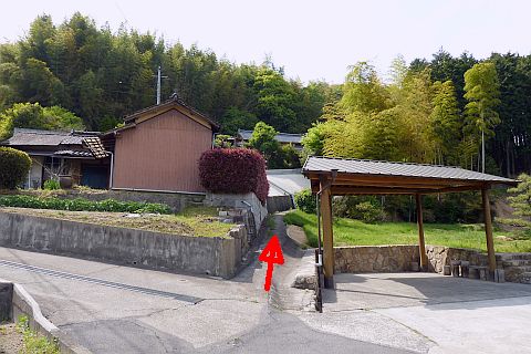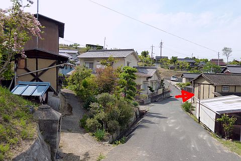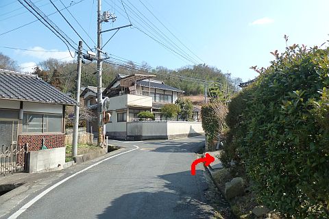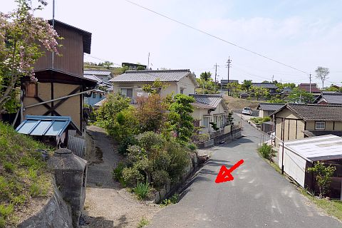 十地集会所前の丁字路を左折し、細道を西へ28m進む