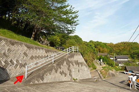 車道から参道の階段を上がり、東へ10m進む