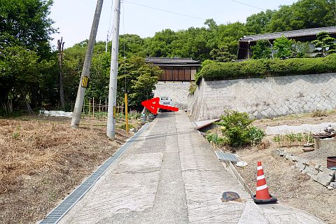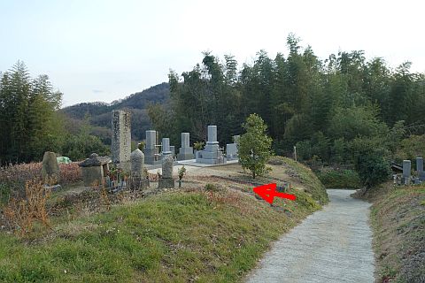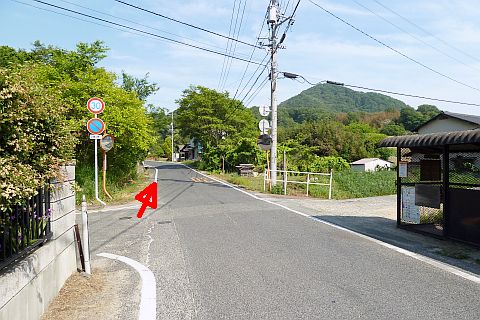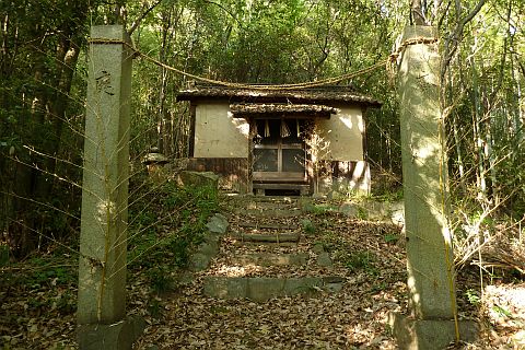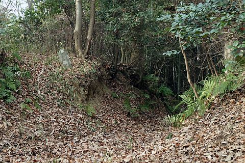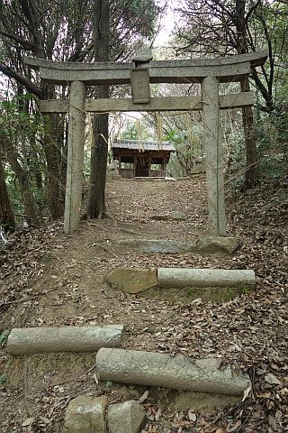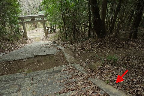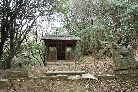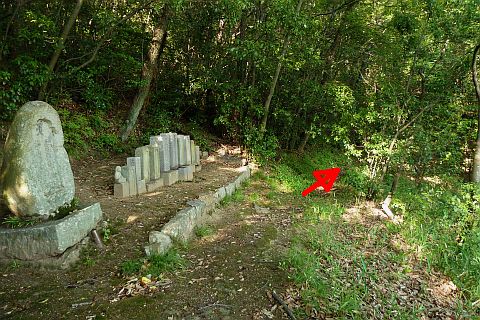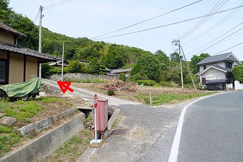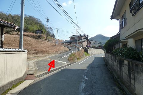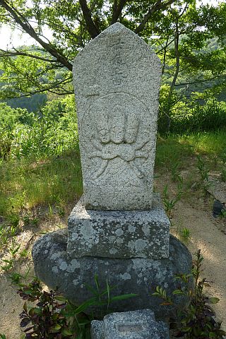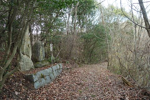 勧請峠から代官道(小黒崎から宗国を通って鴨方に行く道)を西へ1.42km下り、