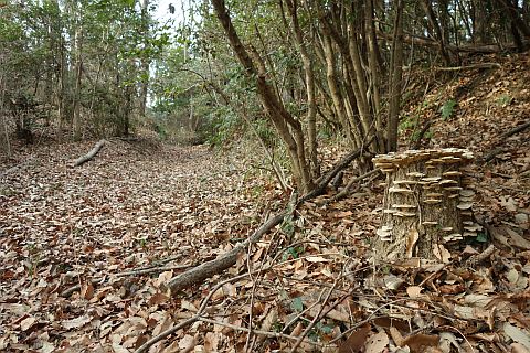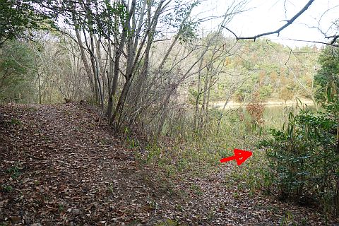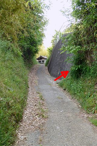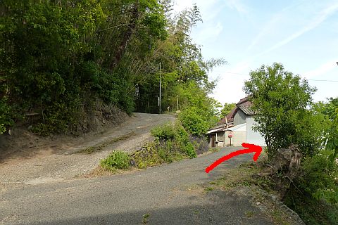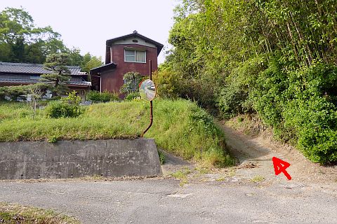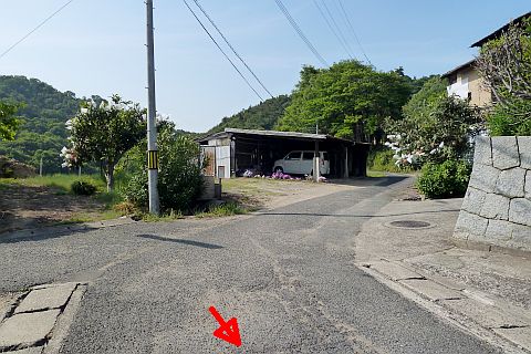 五叉路から東へ18m進んで右折し、畑道を南南東へ38m進む
