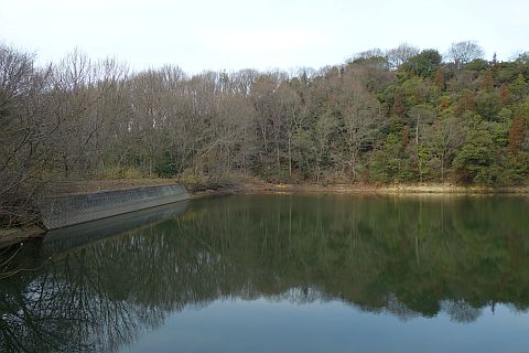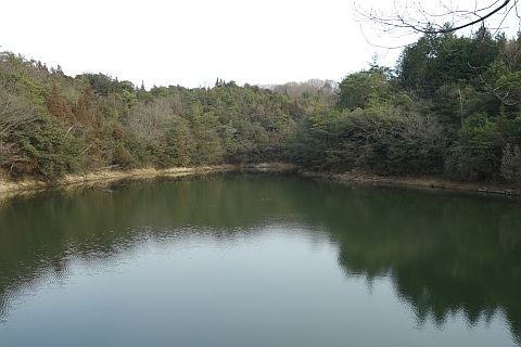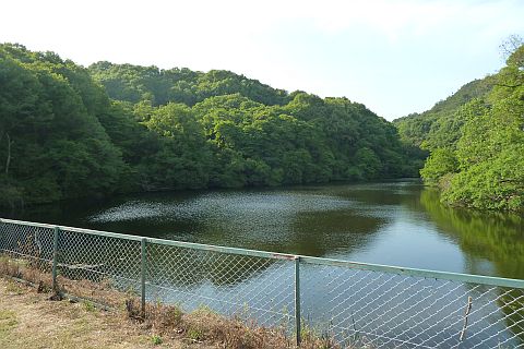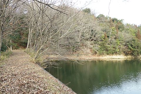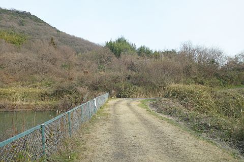左(南西)へ約1km下ると天神池の土手の東端(大島中学校の北)に出る。