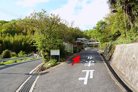 坪田医院前の西にある丁字路を右折し、車道を南へ155m進む