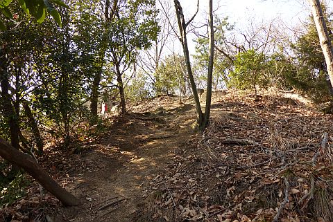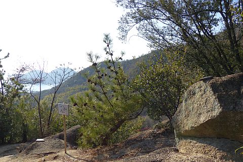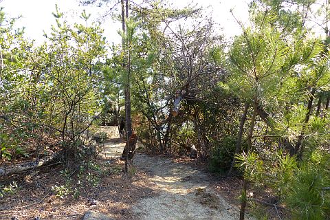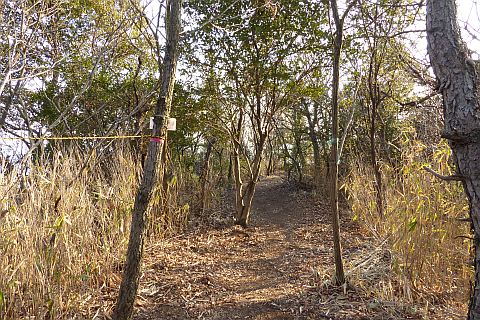 三叉路を左折して西へ進むと御嶽山山頂へ、右折して東へ向かうと観音尾根道を下って登山口へ