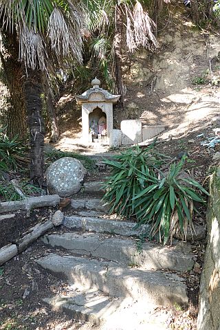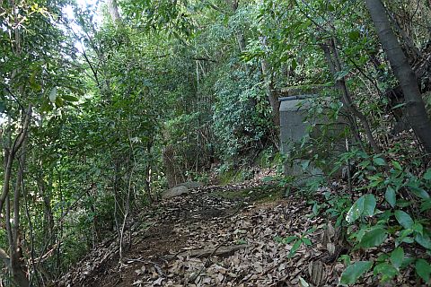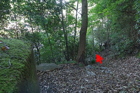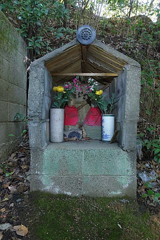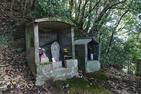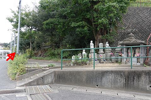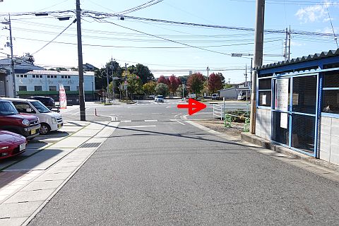 墓地を通り抜け、車道に出たら右折して南東へ15m進む