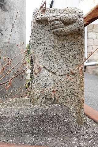 「*(向かって左方向への指さし印) 十六番 へんろ道 施主 守分◯◯」