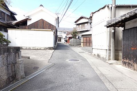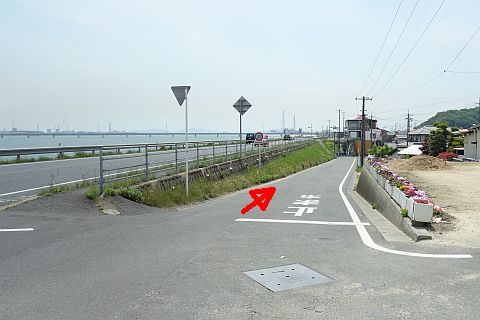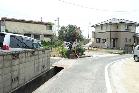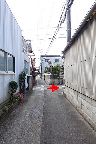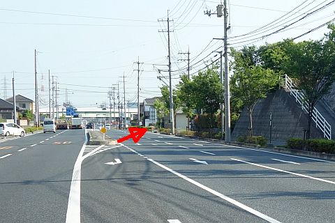 産業道路の横断歩道を渡って左折し、南へ25m進む