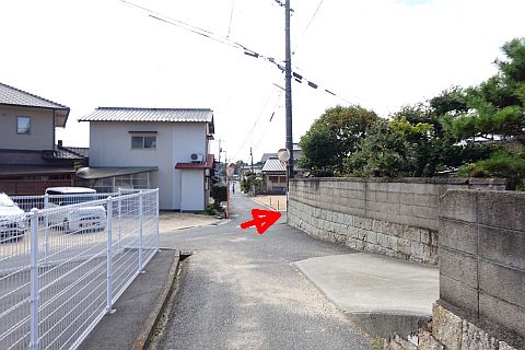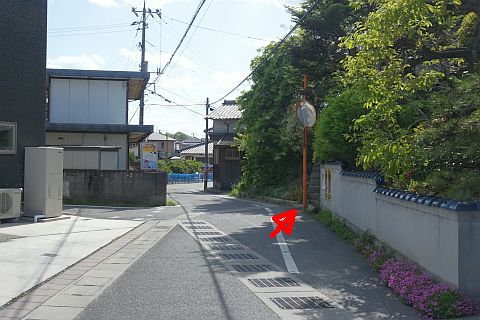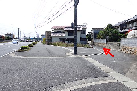 車の場合はY字路からさらに南へ135m進んだ所にある交差点を右折し、西南西へ105m進む