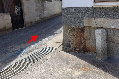 南へ20m進み、ゴミステーションがあるY字路を右折して南南西へ205m進む