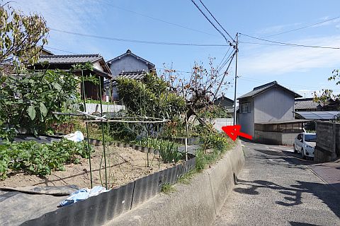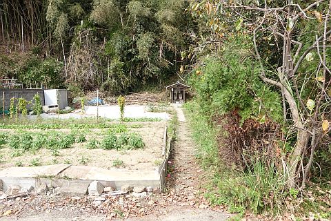 畑の横の細道を北へ15m進む