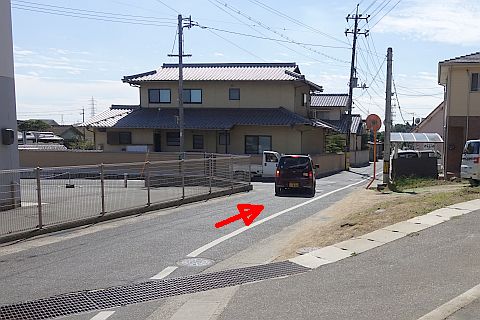 民家の手前で右折