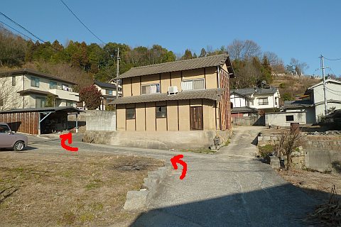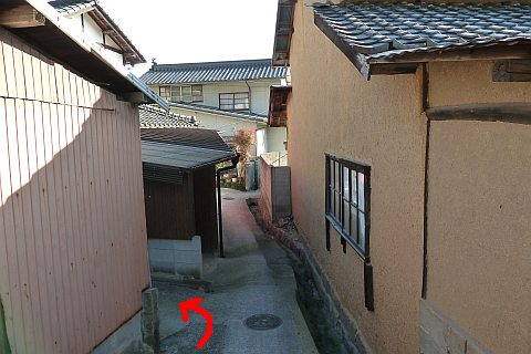 十字路から細道を南南東へ30m進む