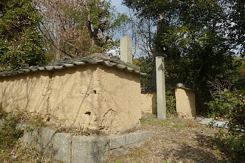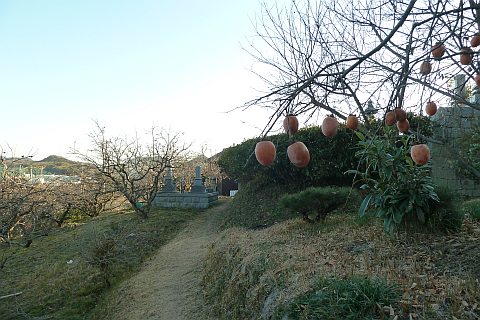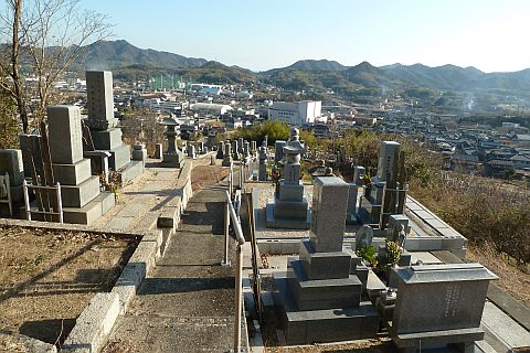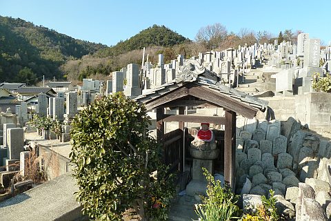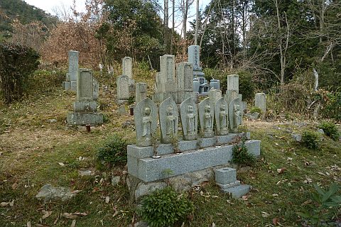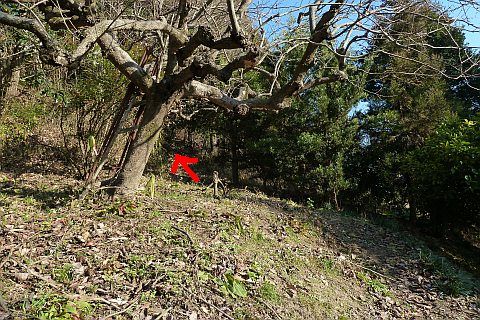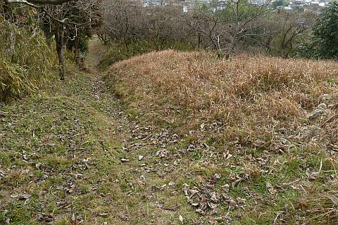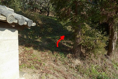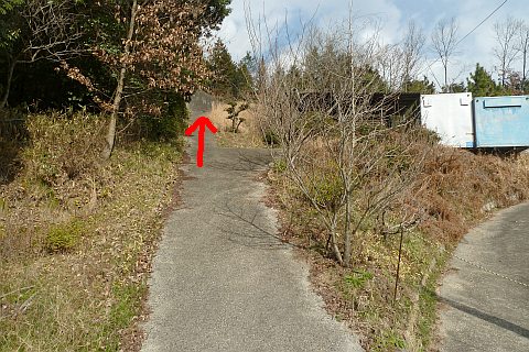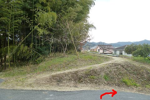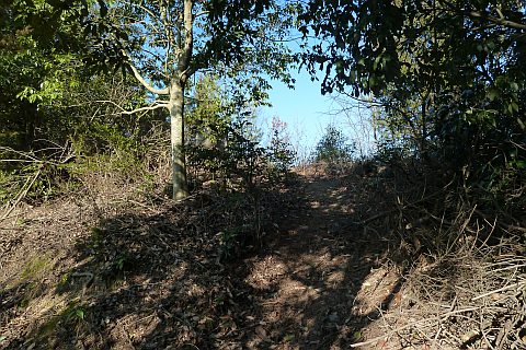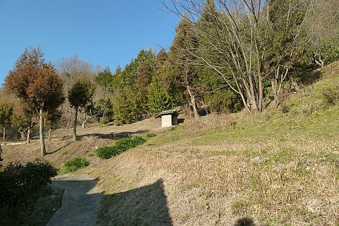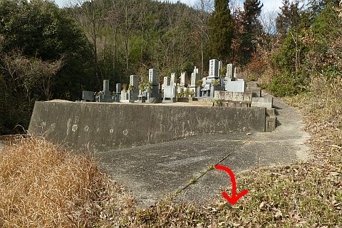 弓道場の駐車場の北端から墓地への参道を北北東へ35m上る