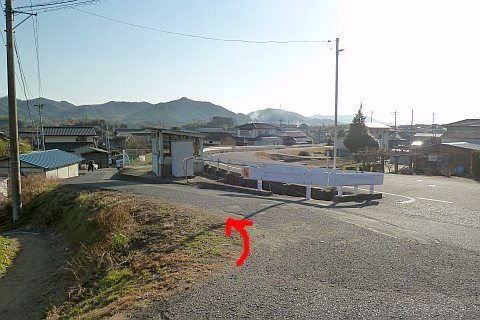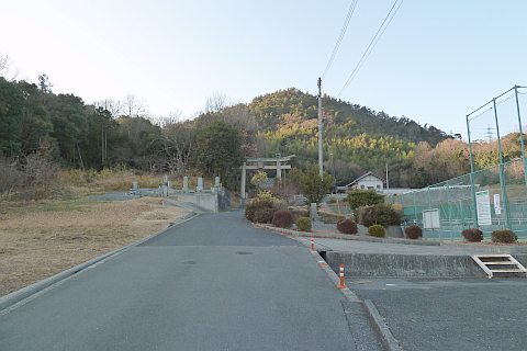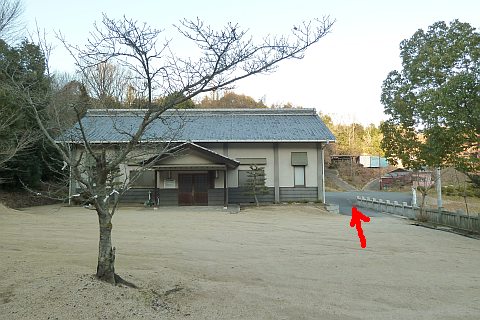 山神社の拝殿前から里庄弓道場の横を通り抜けて北東へ70m進む