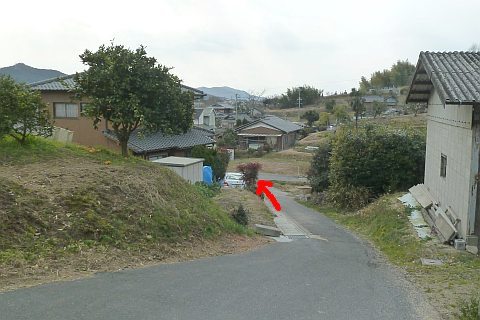 細道を南へ6m下り、丁字路を左折