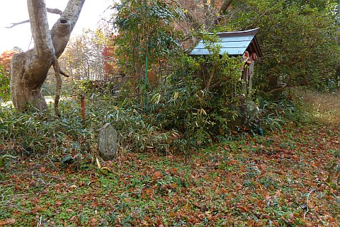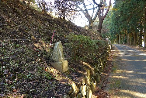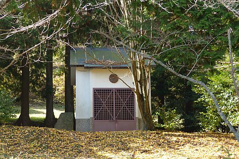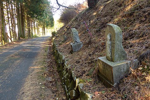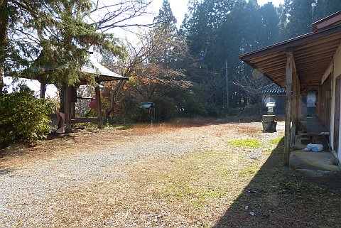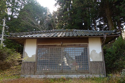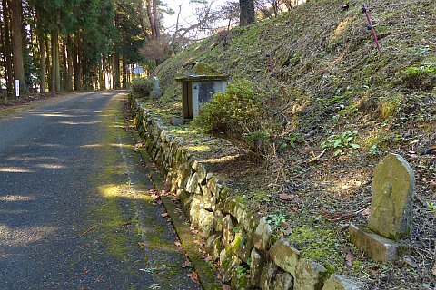 休堂の東(向かって左)を通って細道を南へ40m進み、右折して西へ20m上る。