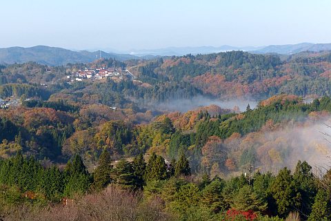 須志山の後方に鵠ノ森山(こうのもりやま 標高480m 弥高山の東北東10.8km)が、