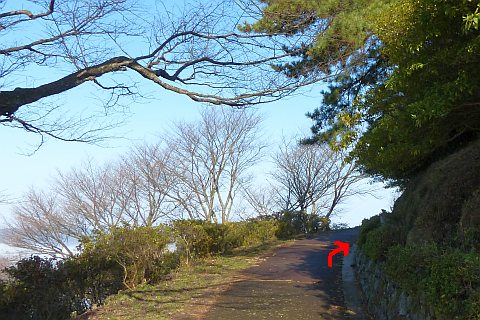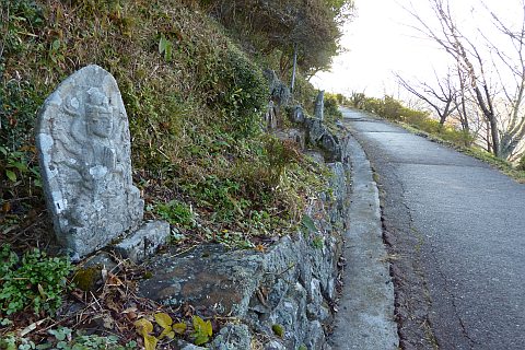 直登遊歩道を西へ下ると45番札所前の車道に出る。