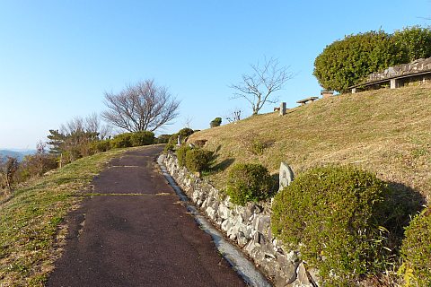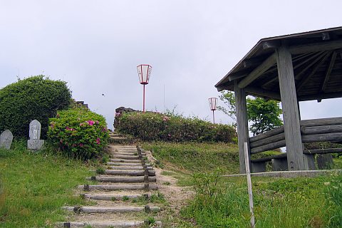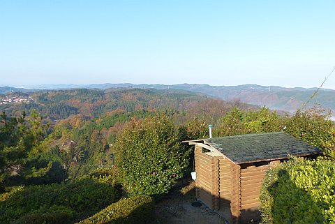 山頂から直登遊歩道を西へ15m下った所にトイレあり