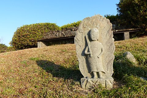 怒った弘法大師が須志山の鬼に石を投げ付けたという伝説がある。