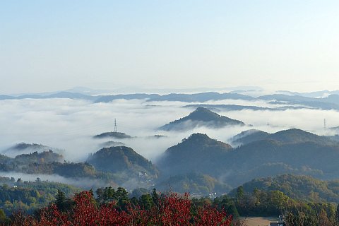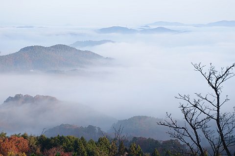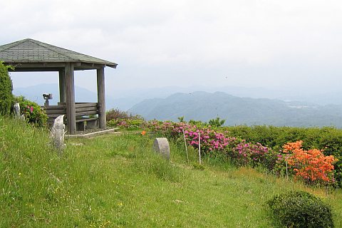 向かって左に成羽の高丸山(540.4m 弥高山の東10.4km)が見えている