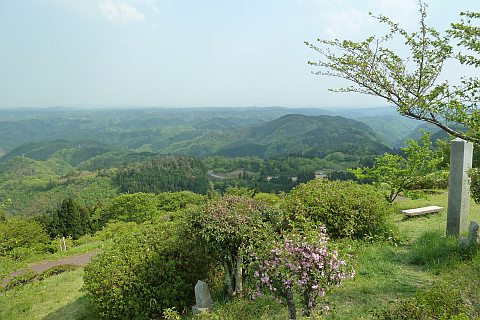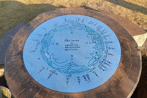 その後方に備中松山城跡がある臥牛山(標高487m 弥高山の東北東21.3km)が見えている。