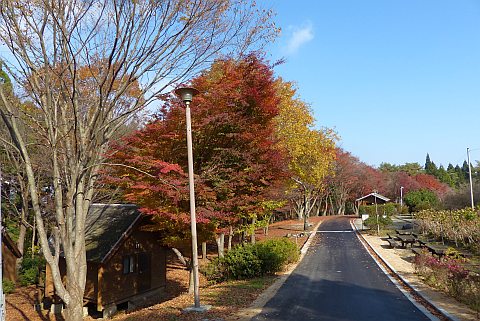 丁字路を右折し、バンガロー沿いの前を東へ270m進む。