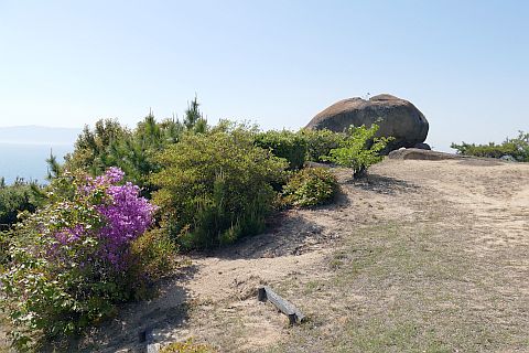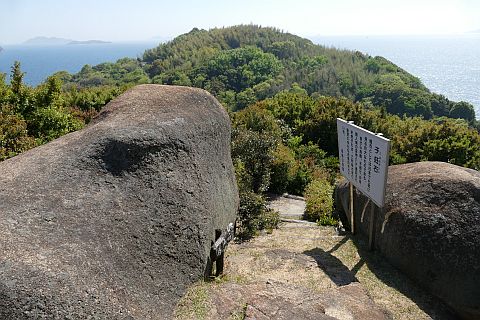 「吉備高島考證(p.25 昭和14年)」に「一一、四隅の樓石 高島行宮阯の四方に樓石がある。