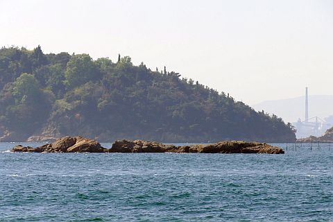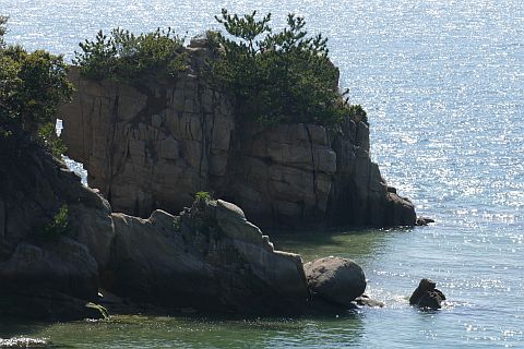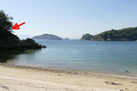 窓石は赤矢印の辺りにある。干潮時には歩いていけるらしい。