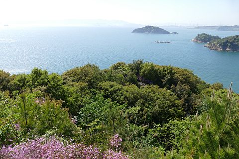 窓石がある窓の鼻から。後ろは稲積島。