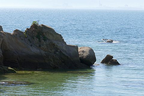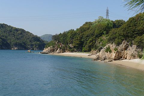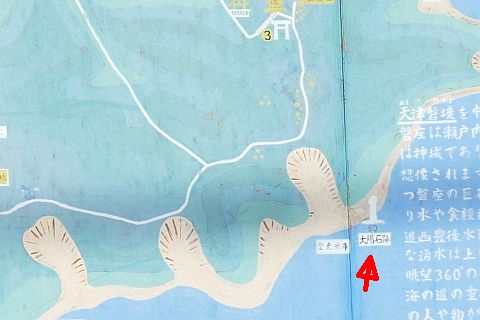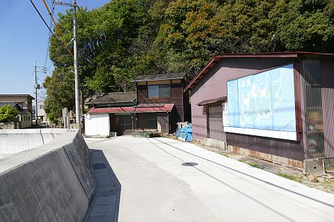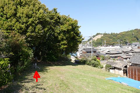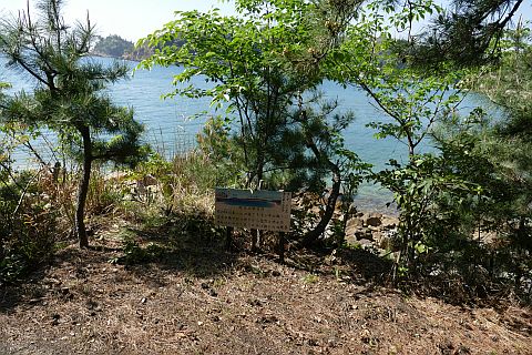 丁字路を右折して海岸沿いの道を東へ82m、北へ53m進む