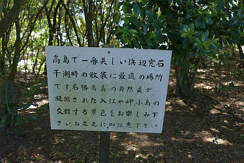 島民は行宮護衛の見張番所であつたと云ひ、國學者は高島を*神地(神地)と定められたる