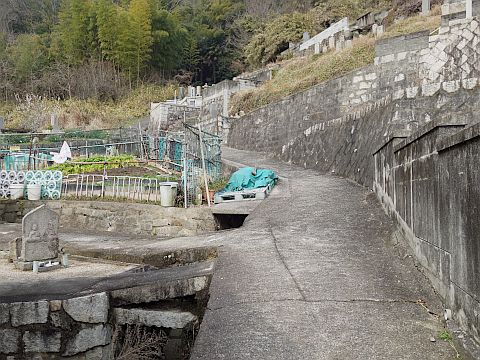 参道を下って墓地の入り口にある丁字路に戻り、右折して北北西へ21m上る