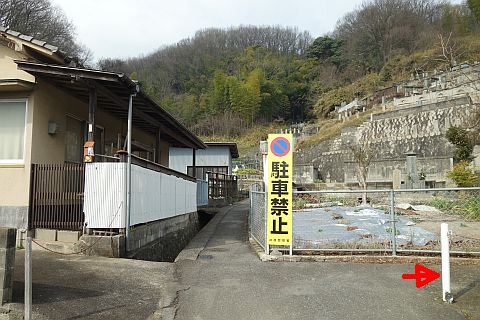墓地の入り口にある丁字路を右折